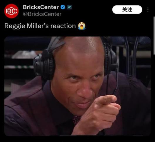 值得一提的是,今天的場邊解說就是步行者名宿雷吉·米勒,當他看到哈利伯頓做出鎖喉慶祝動作時,也向他露出了肯定的表情。