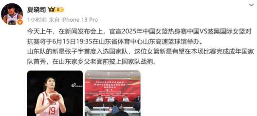 “今天上午,在新聞發(fā)布會(huì)上,官宣2025年中國(guó)女籃熱身賽中國(guó)VS波黑國(guó)際女籃對(duì)抗賽將于6月15日19:35在山東省體育中心山東高速籃球館舉辦。