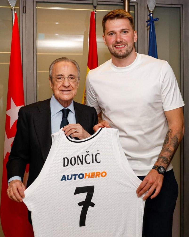 此外,東契奇還與皇馬主席弗洛倫蒂諾進行了合影。