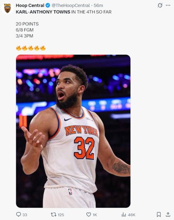 唐斯這場比賽的含金量極高,卡萊爾對唐斯、布倫森的針對性防守已經(jīng)相當(dāng)成功,而且唐斯與布倫森都是早早陷入犯規(guī)困擾的,沒想到唐斯還能在末節(jié)大爆發(fā)。