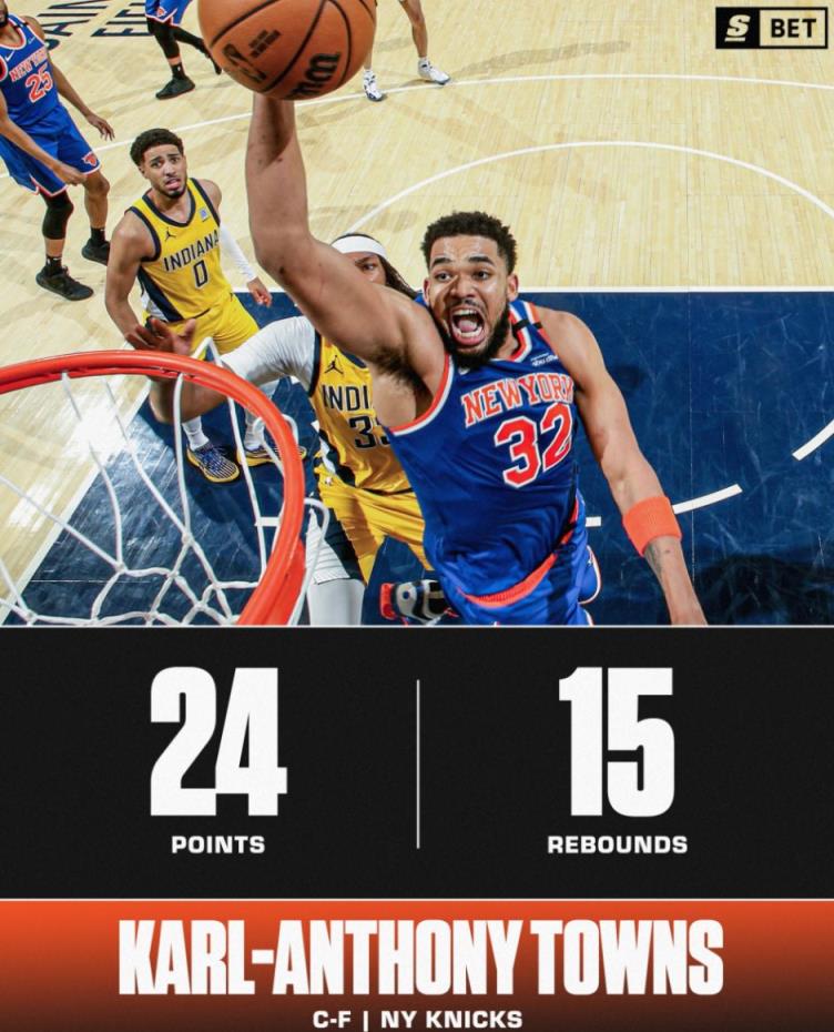 唐斯此役也成為尼克斯隊(duì)史布倫森后第二位在季后賽拿到末節(jié)20+的球員,布倫森在2024年東部半決賽G1末節(jié)拿過20分。