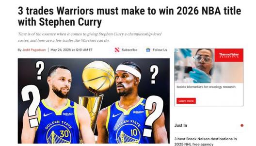 近日美媒Clutchpoints模擬了三套交易方案,他們認(rèn)為如果勇士完成這三筆交易(完成其中一筆即可)將在2026年奪得NBA總冠軍,庫(kù)里將完成職業(yè)生涯第五個(gè)總冠軍,庫(kù)里將借此進(jìn)入歷史前五之列。