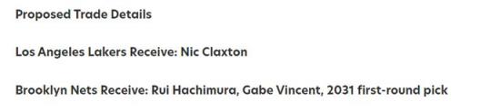 補強五號位的目標是籃網(wǎng)的克拉克斯頓(趙四),湖人送出八村壘、文森特、2031年不保護首輪得到克拉克斯頓。