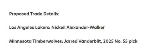 FW模擬交易得到沃克的交易方案——范德比爾特、55號簽,這筆2換1的方案湖人送出了55號簽,那么就等于是不打算去撿漏楊瀚森了?難道是讓楊瀚森直接落選,最終湖人簽落選的楊瀚森?也就是當年里夫斯參選的情況,最終也是落選后湖人簽下給了兩年合約。沃克的確是一個很頂級的側(cè)翼,能投能防。