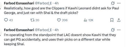 Farbod Esnaashari寫道:“如果小卡當(dāng)年沒有要求引進(jìn)喬治,球隊利用亞歷山大和那些選秀權(quán)來運營球隊,快船有多棒呢?”