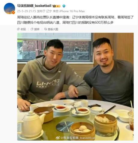 周琦為四川打全運會能賺多少錢?經(jīng)紀人睢冉透露實情,還涉及遼寧球隊