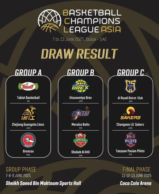 今年的籃球亞冠杯賽分組已經(jīng)確定,CBA新科總冠軍浙江廣廈男籃與伊朗塔比亞特、蒙古烏蘭巴托野馬同分在一組。