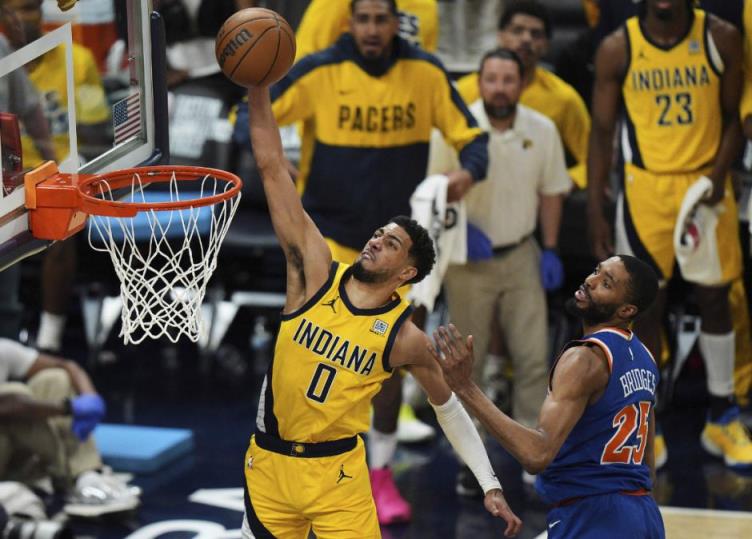 末節(jié)尼克斯的防守強(qiáng)度明顯降低體能不足,哈利伯頓3分鐘里3中3拿到6分3助攻,哈利伯頓logo shoot命中。末節(jié)哈利伯頓11分5助攻3籃板,投籃是6中5很猛。