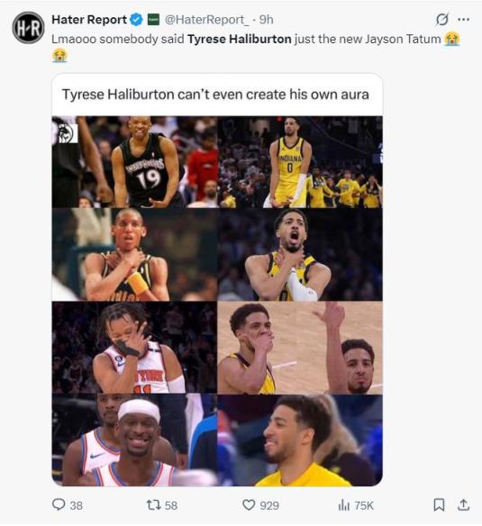 泰雷斯-哈利伯頓成為季后賽“最裝之王”,卡塞爾、雷吉米勒、布倫森、SGA的慶祝動(dòng)作他都用過了,但哈利伯頓在G5一戰(zhàn)中7中2遭到筆誅墨伐。結(jié)果他G6一戰(zhàn)首節(jié)4中0+三分2中0拿0分4助攻2搶斷。