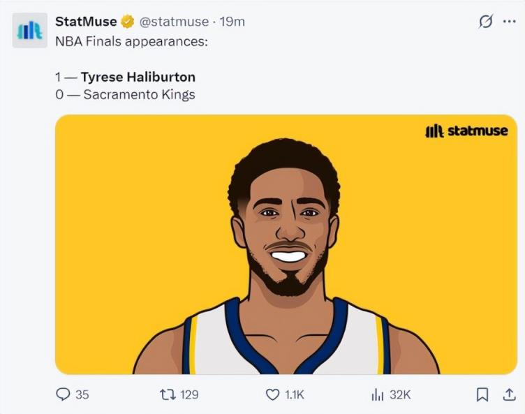賽后數(shù)媒寫道:哈利伯頓1次總決賽,國王隊(duì)更名后0次。