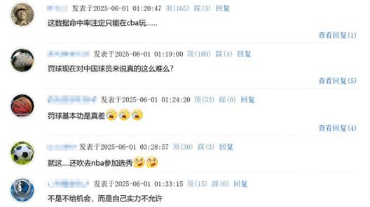 要知道,這哥仨還都是后衛(wèi),卻在場(chǎng)上打出如此辣眼的命中率,關(guān)鍵是最基本的罰球,都很難做到保持相對(duì)穩(wěn)定的準(zhǔn)星,這也讓不少球迷感到唏噓:“這樣的命中率注定只能在CBA玩”、“罰球現(xiàn)在對(duì)中國(guó)球員來(lái)說(shuō)真的這么難嗎?”