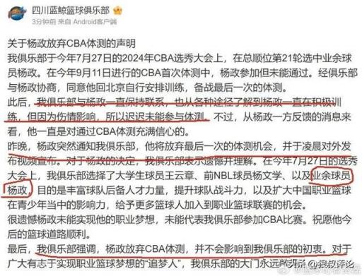 不久前,楊政也在社媒做出回應(yīng),四川隊選我肯定是想從人氣方面增加關(guān)注度,正常情況下我是不會去的。我要知道到今天這樣,我還不如不去呢。隨后怒斥報道CBA選秀的記者們就是“有證的噴子”。