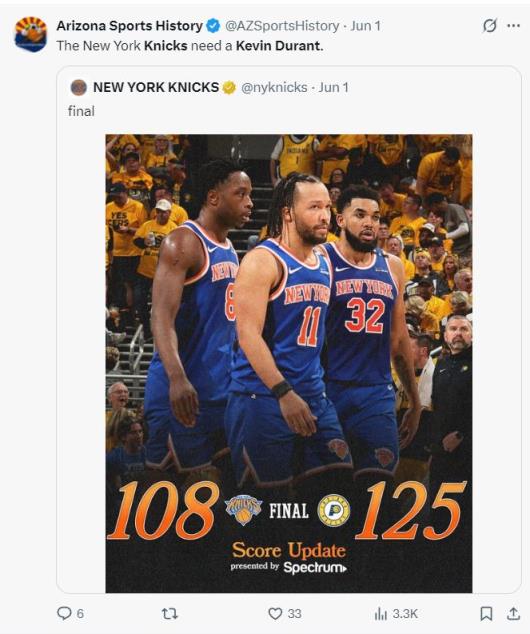 在尼克斯東決折戟后,就有美媒建議尼克斯在休賽期追逐凱文-杜蘭特。