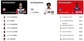 德甲本賽季速度榜顯示,弗林蓬的速到達到了36.34km/h,僅次于巴霍亞(法蘭克福)、奧蓬達(萊比錫)、孔泰(海登海姆)、霍爾特曼(波鴻)、伯克(不萊梅)、恩古穆(門興)六人。