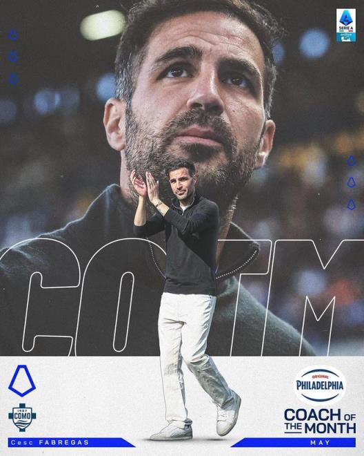 官方消息,科莫主帥法布雷加斯當(dāng)選意甲5月份最佳主帥,這位西班牙教練連續(xù)兩個(gè)月獲此殊榮。