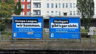 德國杯決賽前比勒菲爾德在柏林街頭張貼海報:斯圖加特根本不存在