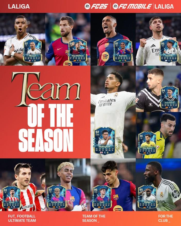 EA官方剛剛公布了本賽季《FC25》的西甲賽季最佳陣容,姆巴佩、亞馬爾、拉菲尼亞、貝林厄姆領(lǐng)銜。