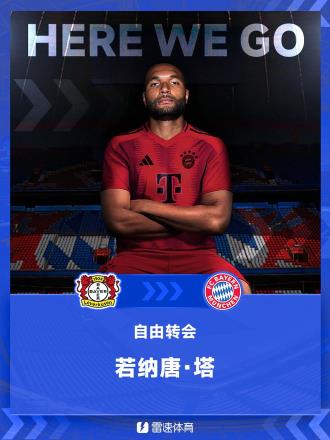 雷速體育5月24日訊 知名記者羅馬諾用其標(biāo)志性的“Here We Go!”確認(rèn),藥廠后衛(wèi)若納唐·塔今夏將以自由身加盟拜仁慕尼黑。