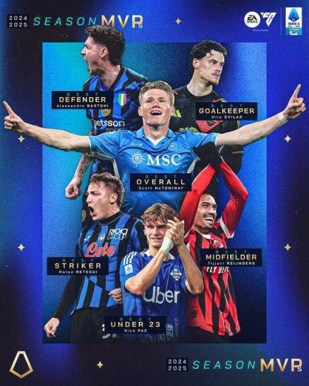 意甲各位置最佳球員:巴斯托尼、賴因德斯與麥克托米奈領(lǐng)跑