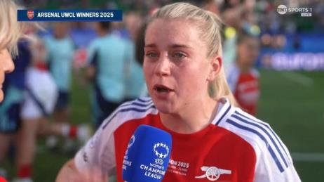 05月25日訊 阿森納女足1比0力克巴薩女足奪冠,賽后阿森納女足前鋒魯索眼含熱淚接受了采訪。