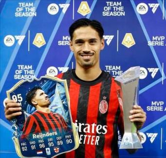 比賽前,意大利足協(xié)為賴因德斯頒發(fā)了本賽季意甲最佳中場(chǎng)的獎(jiǎng)項(xiàng)。