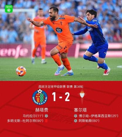 北京時(shí)間5月25日,西班牙足球甲級(jí)聯(lián)賽第38輪,赫塔費(fèi)主場(chǎng)迎戰(zhàn)塞爾塔。比賽中,赫塔費(fèi)由馬約拉爾率先建功,為球隊(duì)取得領(lǐng)先。塞爾塔方面,博爾哈-伊格萊西亞斯接阿斯帕斯的助攻扳平比分,隨后阿斯帕斯再下一城反超比分。比賽尾聲階段,赫塔費(fèi)有一名球員被紅牌罰下。最終,赫塔費(fèi)1-2不敵塞爾塔。