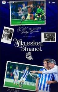 穆諾斯首次擔(dān)任皇家社會(huì)隊(duì)長(zhǎng),賽前與恩師阿爾古亞西爾合影致謝