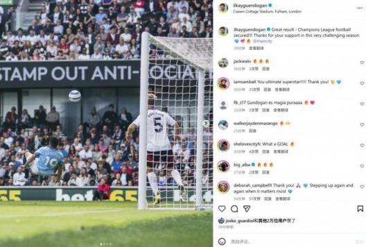 本場(chǎng)比賽京多安打進(jìn)精彩倒鉤,賽后他也在個(gè)人社媒曬出進(jìn)球瞬間照片,配文寫道:“很棒的結(jié)果,鎖定歐冠資格,感謝大家在這一充滿挑戰(zhàn)的賽季里的支持。”