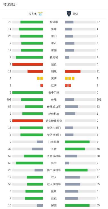 上半場補時第2分鐘,萊切球隊皮耶羅蒂吃到第二張黃牌。