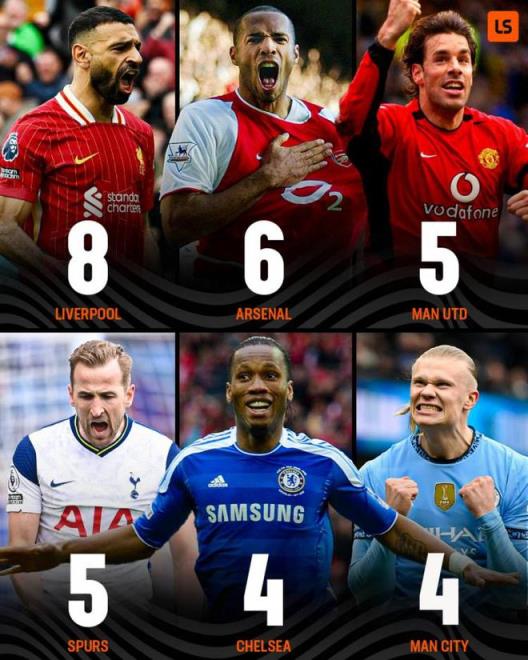 據(jù)LiveScore統(tǒng)計,利物浦球員8次獲得英超金靴,所有俱樂部之中最多,阿森納6次第二多。