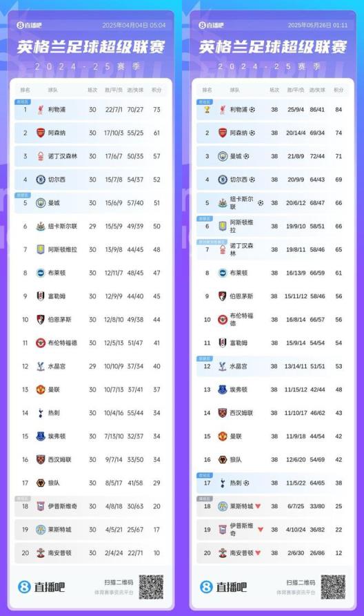 直播吧05月26日訊 英超末輪諾丁漢森林主場0-1不敵切爾西,輸?shù)魻幬尻P(guān)鍵戰(zhàn),最終排名僅英超第7名。