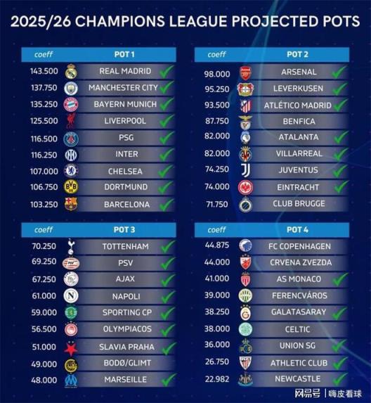 歐洲各大聯(lián)賽已經落幕,那不勒斯力壓國際米蘭獲得冠軍,29支球隊已經獲得歐冠參賽資格。多家媒體根據規(guī)則,計算出下賽季歐冠的分檔情況,阿森納剛好無緣種子隊。