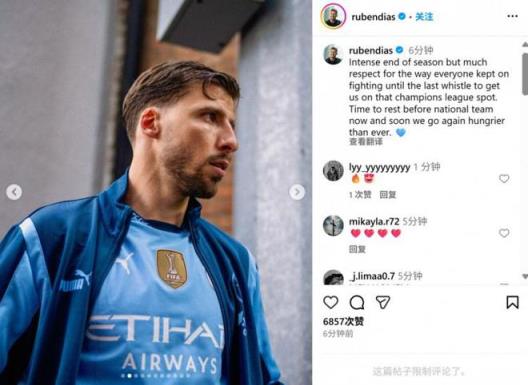 標簽: 曼城 歐冠 富勒姆 魯本迪亞斯 社媒 國家隊