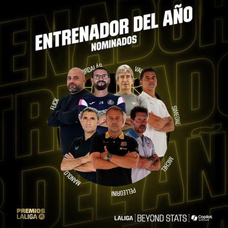 5月27日訊 據(jù)西甲聯(lián)賽官方社交媒體的消息,本賽季西甲聯(lián)賽的最佳主帥候選人已經(jīng)公布,有7人入圍。