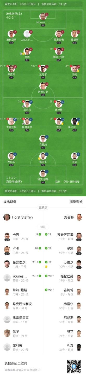 第31分鐘,海登海姆中路防守形同虛設(shè),齊默希德弧頂位置送出直塞,費(fèi)爾豪爾插上橫帶一步過掉門將冷靜打門得分,埃弗斯堡1-1扳平比分↓
