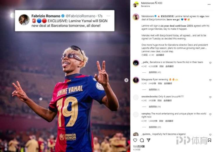 羅馬諾以標(biāo)志性的Here we go報(bào)道,亞馬爾將與巴薩續(xù)約至2031年。