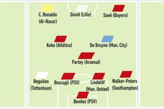 像往年一樣,許多球員將在6月30日之后自由選擇他們想要加盟的球隊。以下是《隊報》列出的合同即將在今夏到期的球員最佳陣容,其中不乏有一些大牌球員,如凱文-德布勞內(nèi)和C羅。