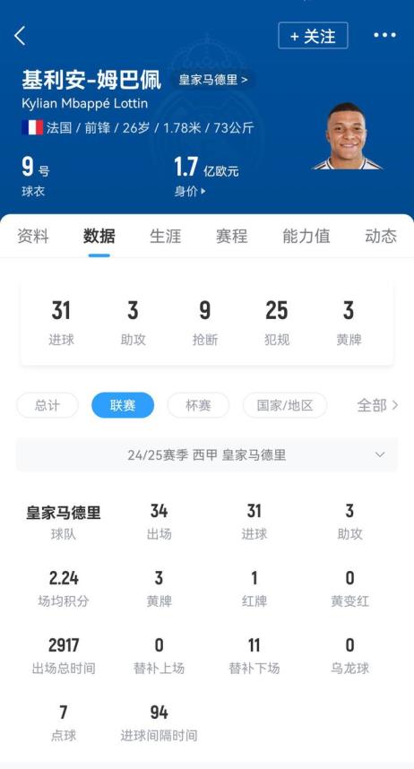 姆巴佩在皇馬賽季收官戰(zhàn)中梅開二度,最終在西甲打入31球鎖定了歐洲金靴。