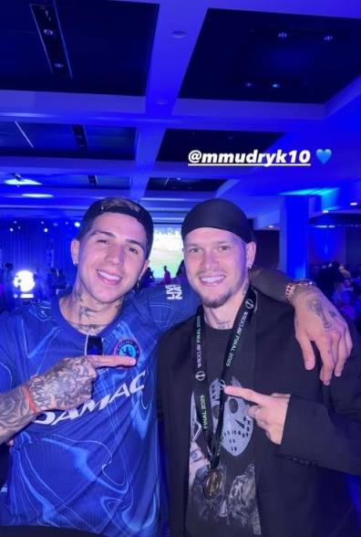 恩佐曬穆德里克合照,后者已戴獎牌彰顯團隊榮耀