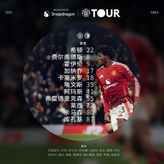 曼聯(lián)對(duì)陣中國(guó)香港:B費(fèi)領(lǐng)銜出戰(zhàn),加納喬、霍伊倫、埃文斯皆在列
