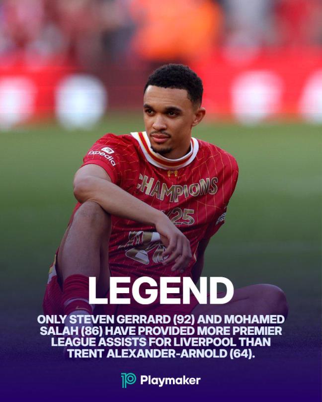 利物浦球員英超助攻榜:杰拉德領(lǐng)跑,薩拉赫與阿諾德緊隨其后