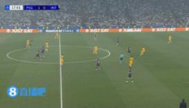 直播吧6月1日訊 歐冠決賽,巴黎vs國米。比賽第17分鐘,克瓦拉茨赫利亞內(nèi)切打門踢飛!