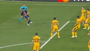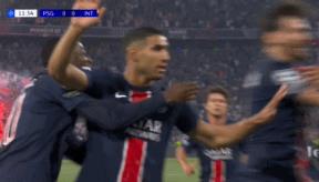 維蒂尼亞送出直塞,杜埃無私橫傳,阿什拉夫推射,攻破索默把守的大門,巴黎1-0領(lǐng)先!