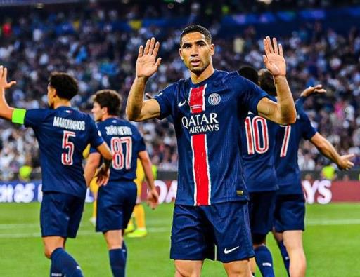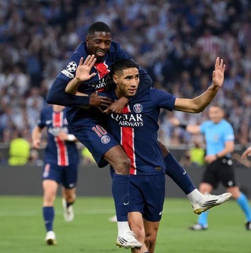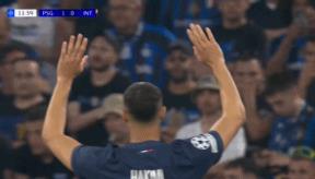 進球之后,巴黎圣日耳曼球迷狂歡慶祝!不過,阿什拉夫拒絕慶祝,他舉起雙手,示意自己“無意冒犯”。