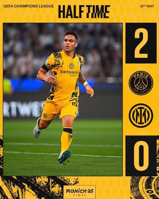 北京時間6月1日,在本賽季的歐冠決賽中,巴黎圣日耳曼開場僅僅20分鐘就由阿什拉夫和杜埃打進兩球,半場過后他們就以2-0的比分領先于國際米蘭。