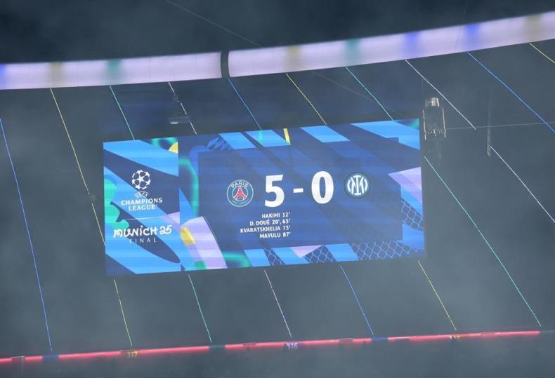 2024/25賽季歐冠落下帷幕,國際米蘭0-5慘敗于巴黎圣日耳曼屈居亞軍。