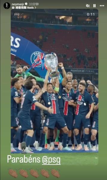 賽后,前巴黎球員內(nèi)馬爾也是在社交媒體對(duì)老東家表示了祝賀。