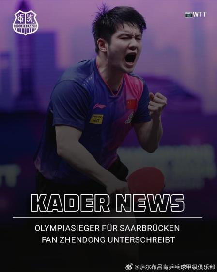 6月1日,,參與2025-2026賽季德國(guó)乒乓球甲級(jí)聯(lián)賽和歐洲冠軍聯(lián)賽。