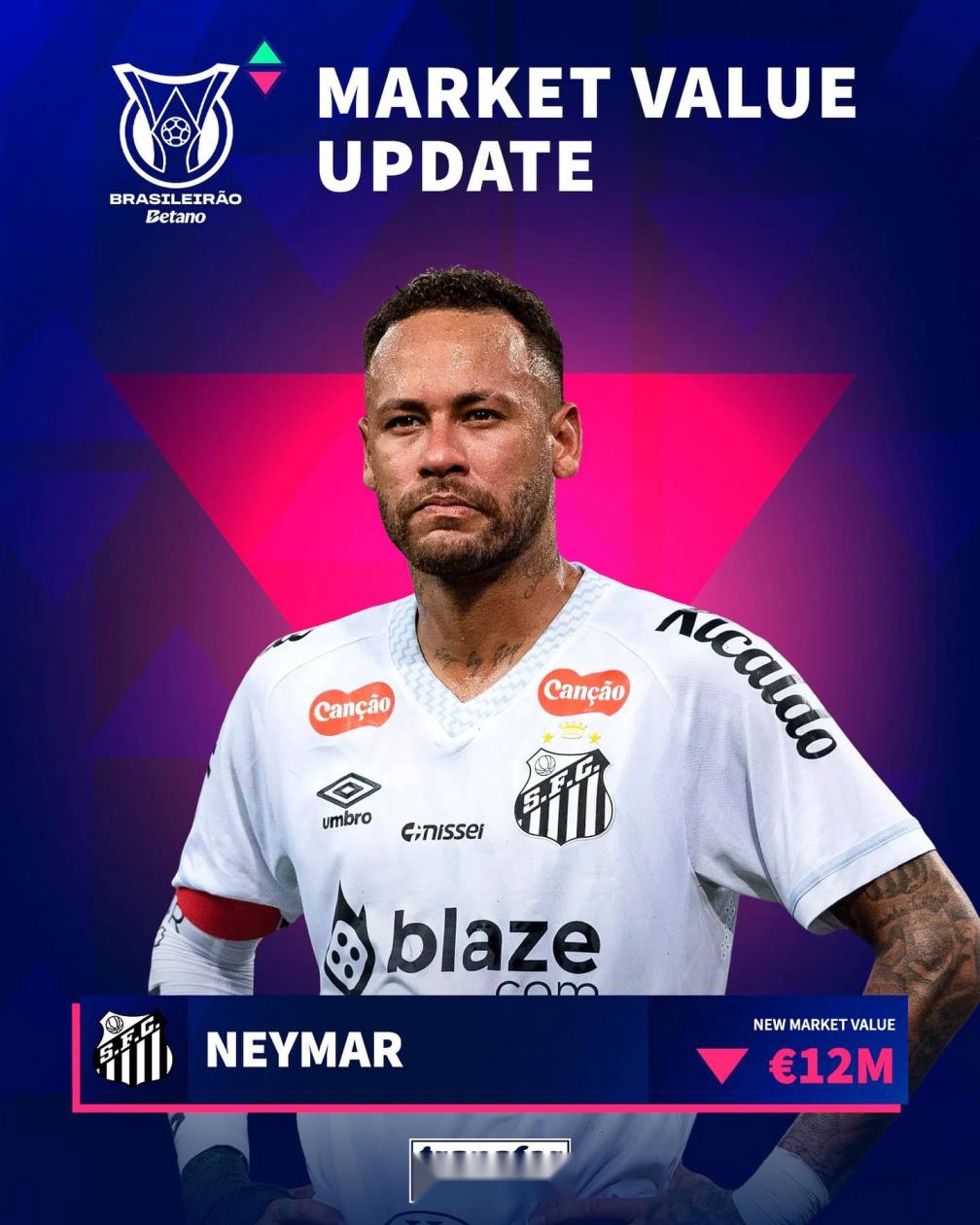 內(nèi)馬爾身價(jià)再降300萬歐降至1200萬歐