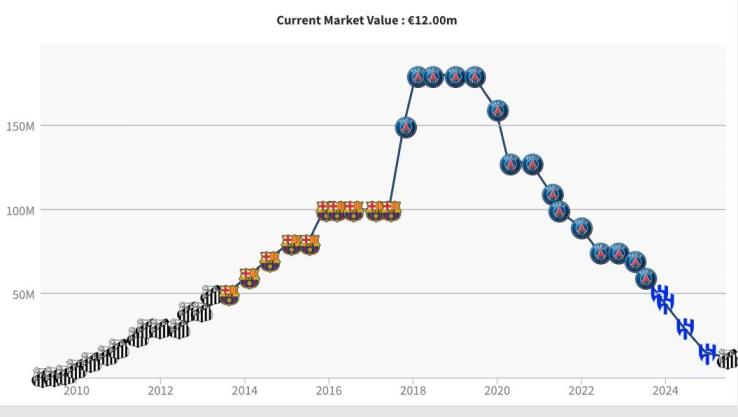 內(nèi)馬爾職業(yè)生涯身價(jià)變化: